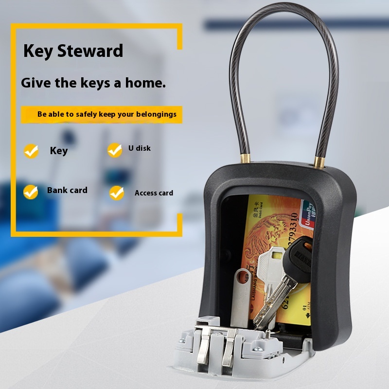 Steel Wire Rope Combination Lock Key Box Soft Steel Cable Wall Hanging Optional Hanging Key Combination Box