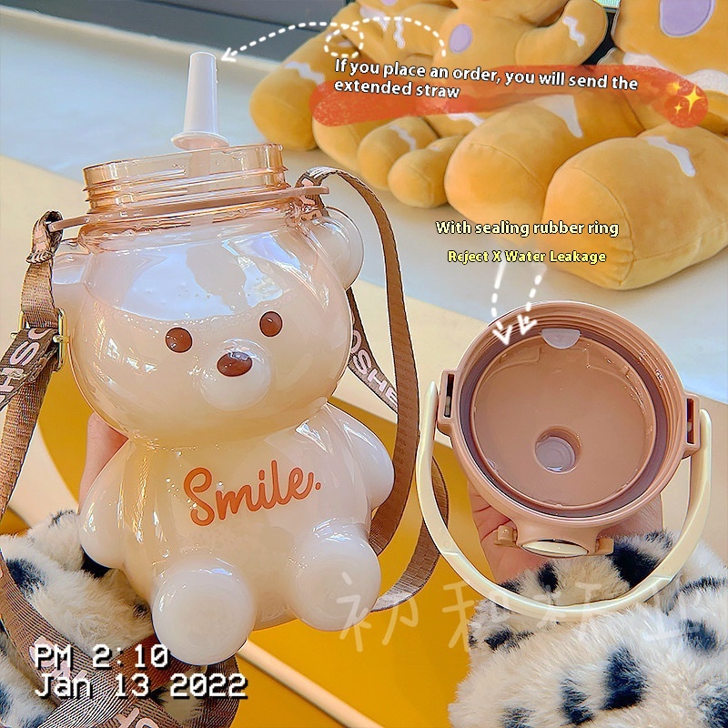 Cute Bear Water Bottle-Portable Summer Straw Cup For Kids,Dual-Use Plastic Bottle,Perfect For Children's Daily Hydration.