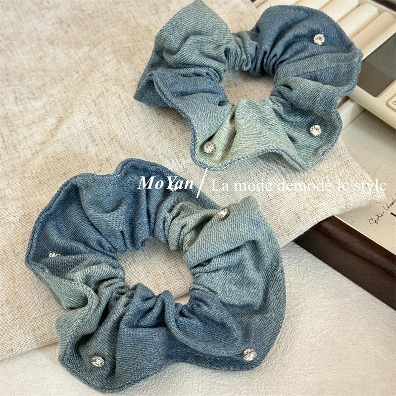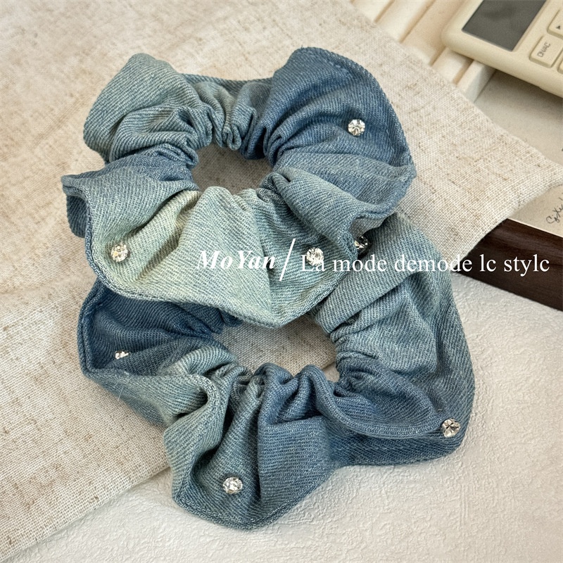 Retro Diamond Denim Fabric Hair Band With Large Intestine,High Elasticity,Ponytail Rubber Band,Style,High-grade Hair Band,Niche Hair Band