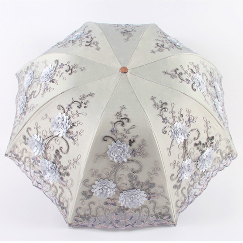 Embroidered Umbrella Lace Umbrella Sunny Umbrella Three-fold Black Glue Double-layer Anti-ultraviolet Parasol