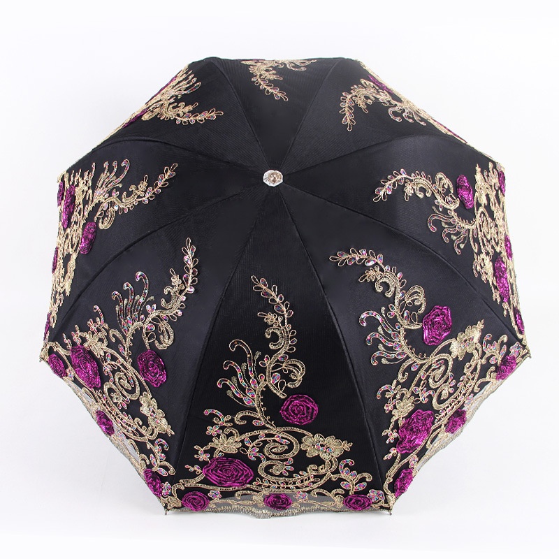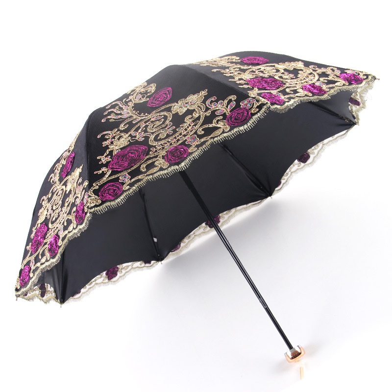 Tri-fold Lace Double-layer Embroidery Begonia Black Glue Anti-ultraviolet Sun Umbrella