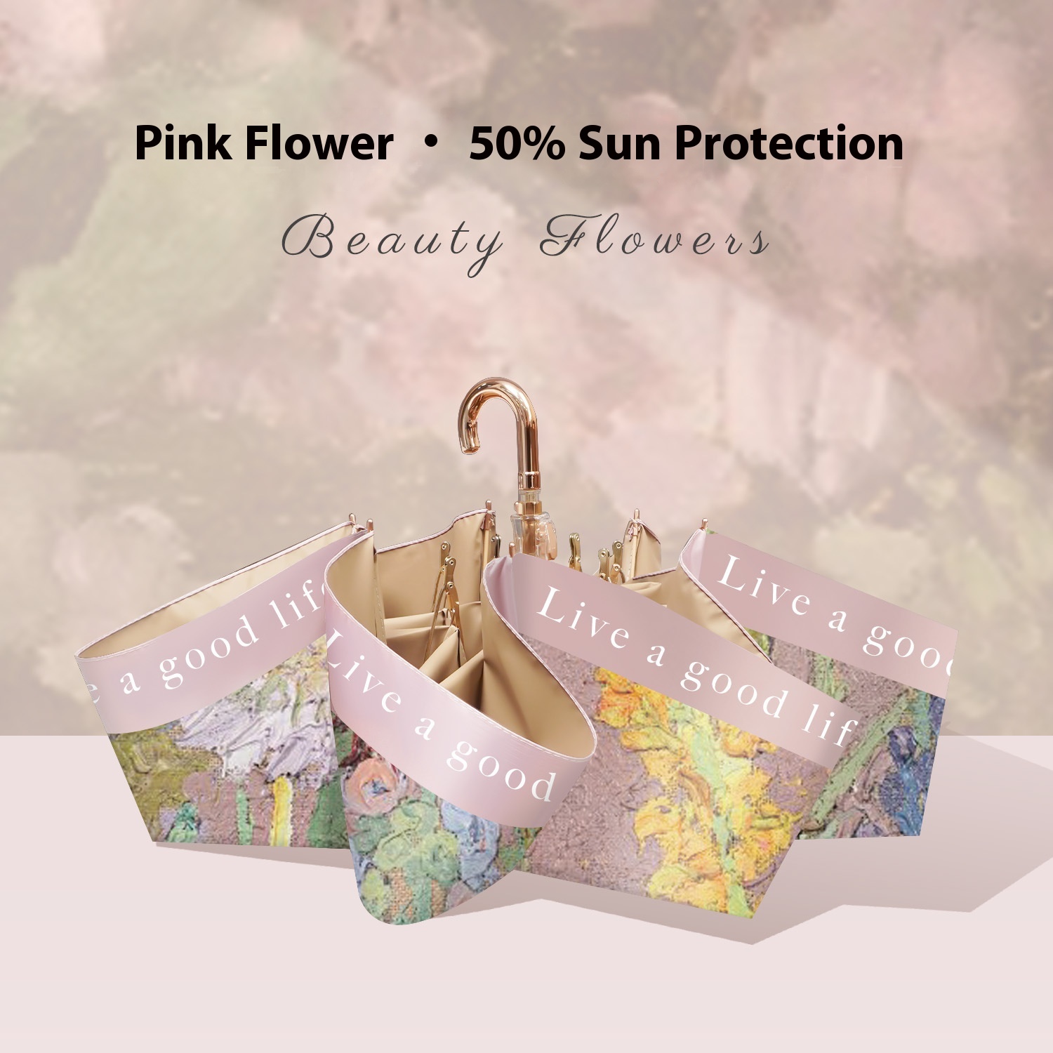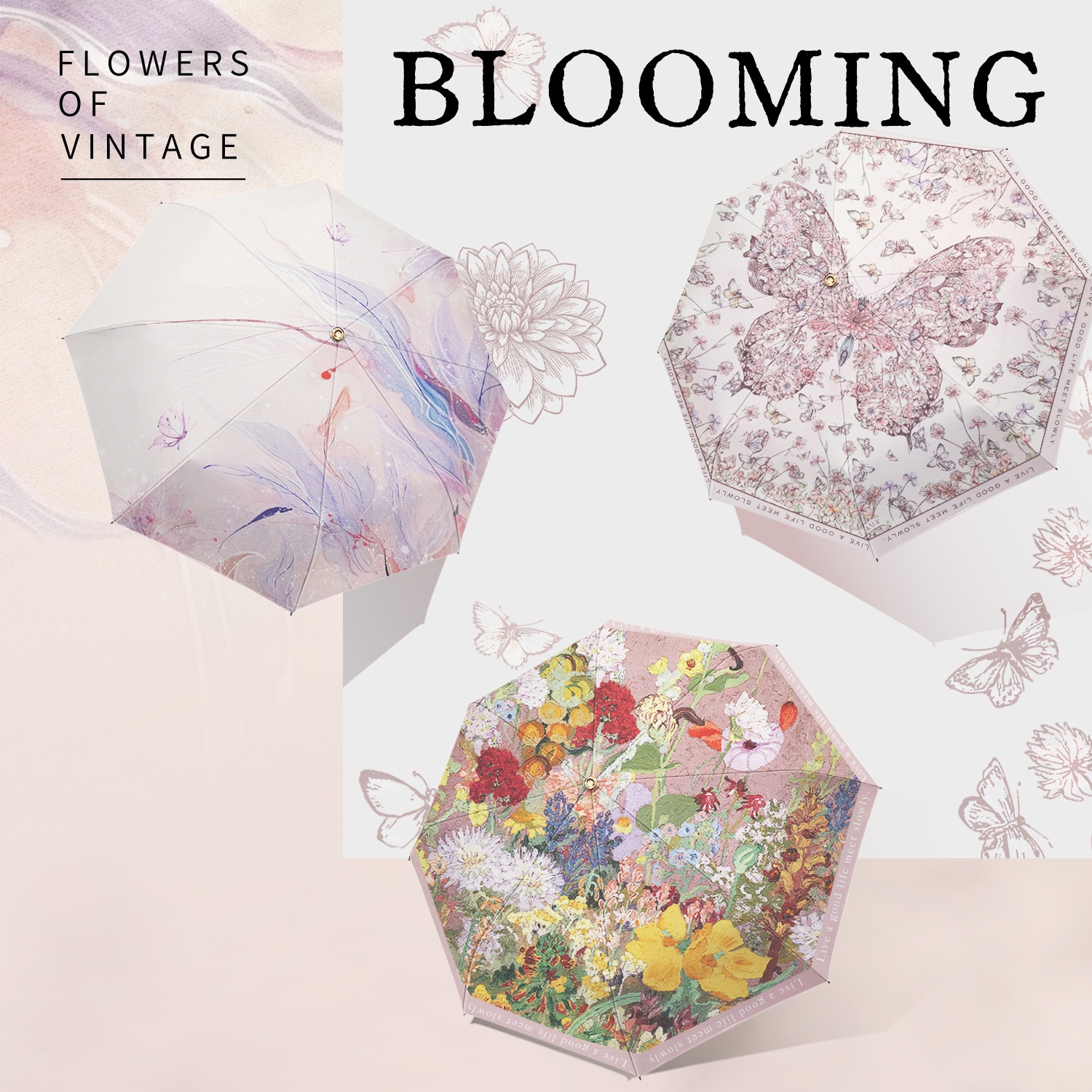 French Oil Painting Small Gold Hook Parasol UVProtection Female Sunny Rain Umbrella Sun Umbrella