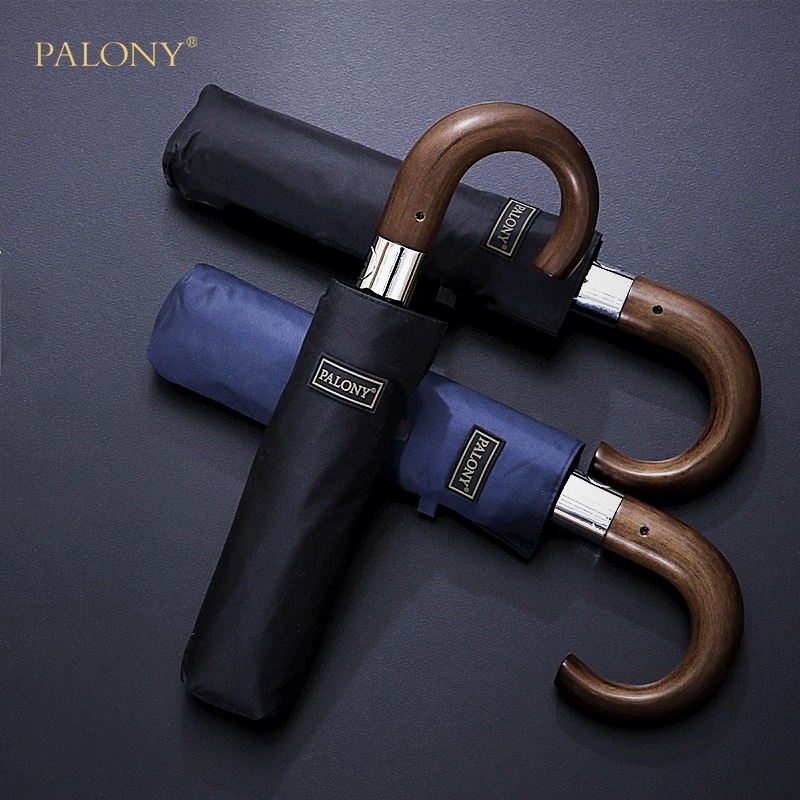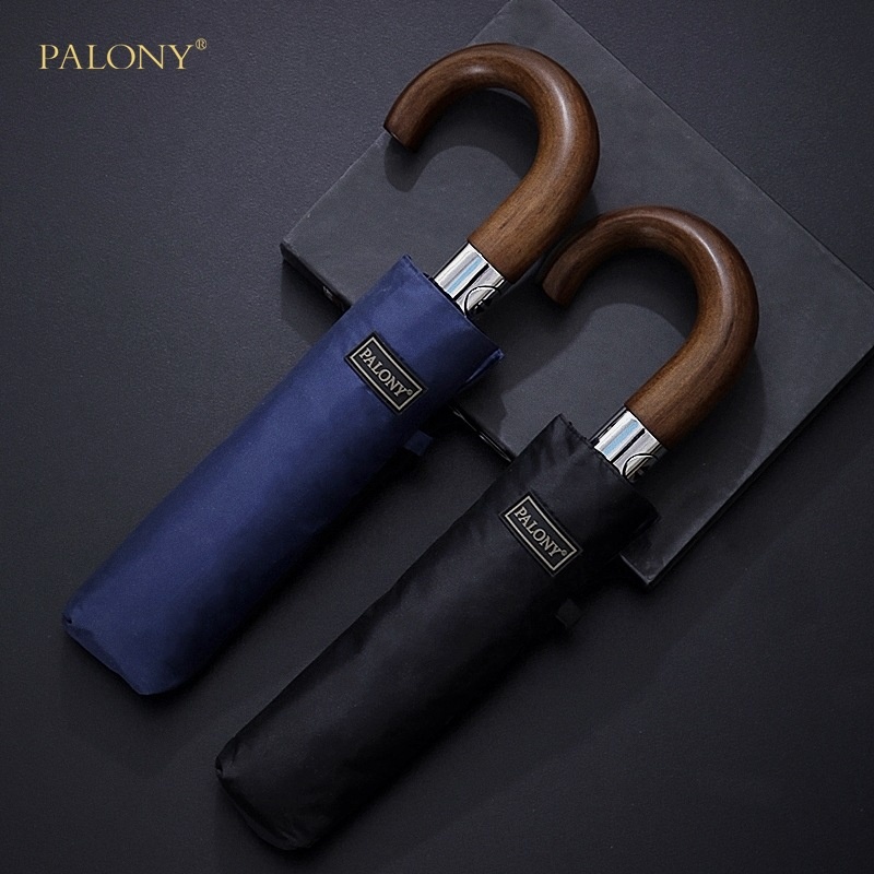 Three-fold Hook Short Wooden Handle Solid Color10 Bone Black Plastic Sunny Umbrella