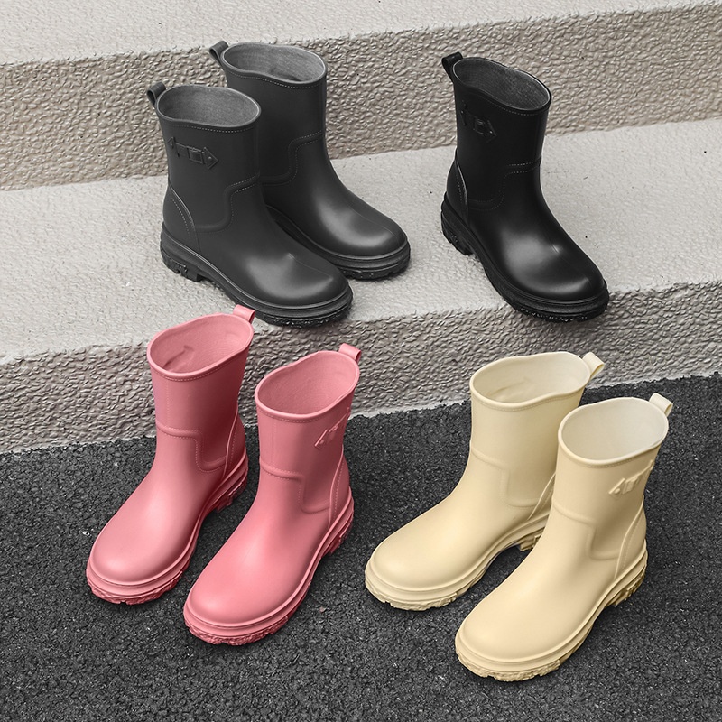 Military Low-top Women's Casual Rain Boots Thickened Korean Style Fashion Waterproof Wear-resistant Women's Rain Boots