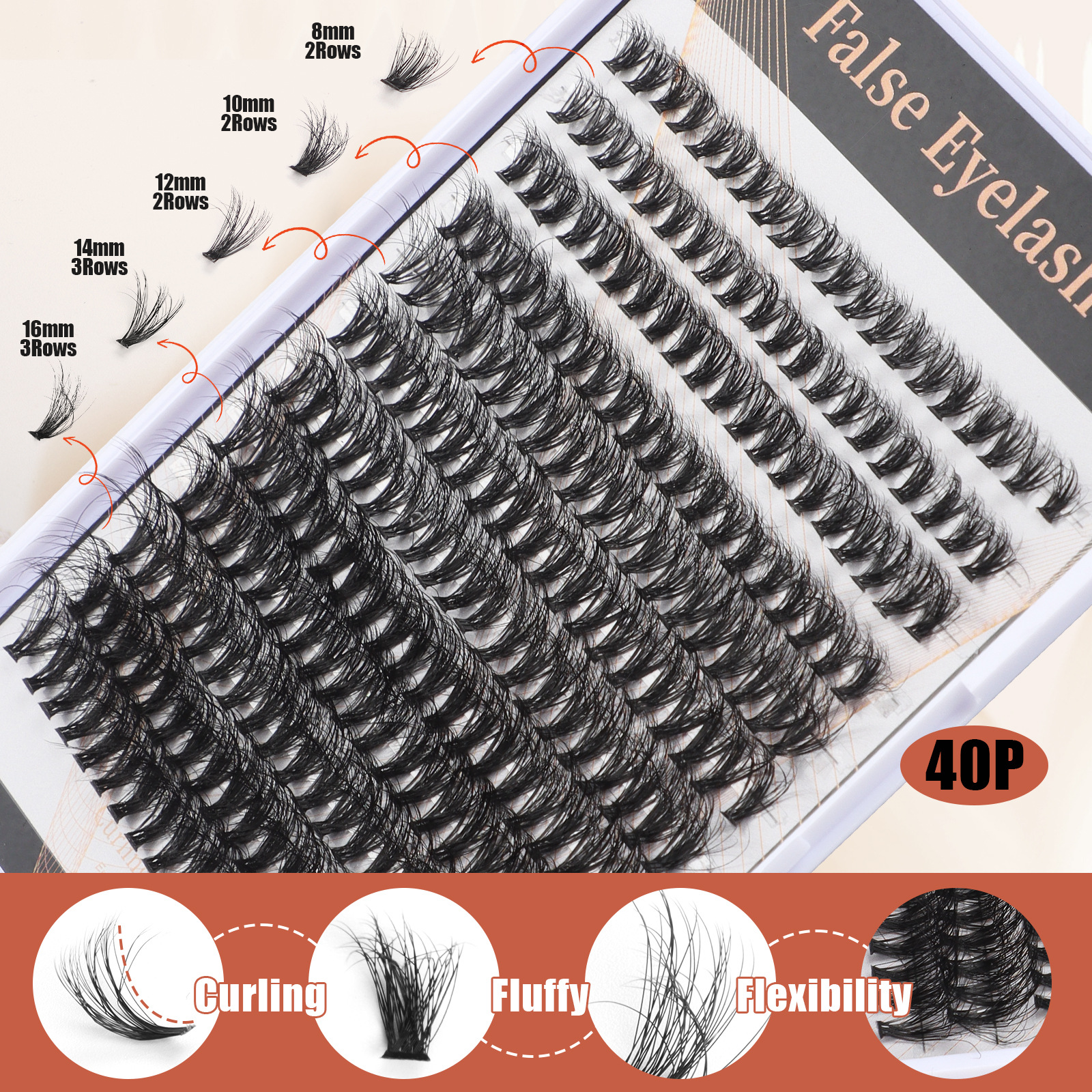 30d40d Eyelashes Volume30p False Eyelashes Dense Hair Hot Melt Segmented8mm-16mm Eyelashes