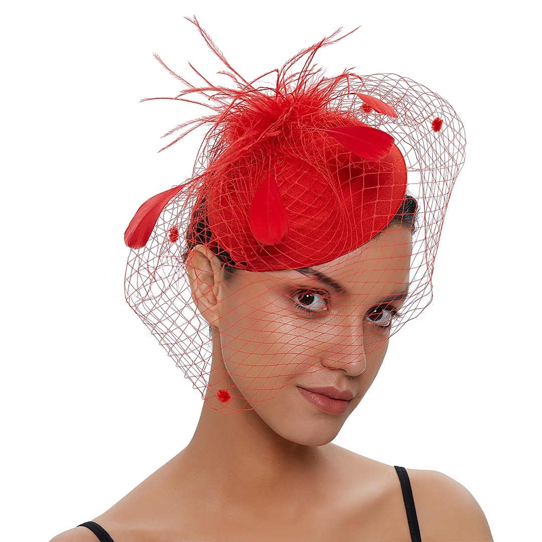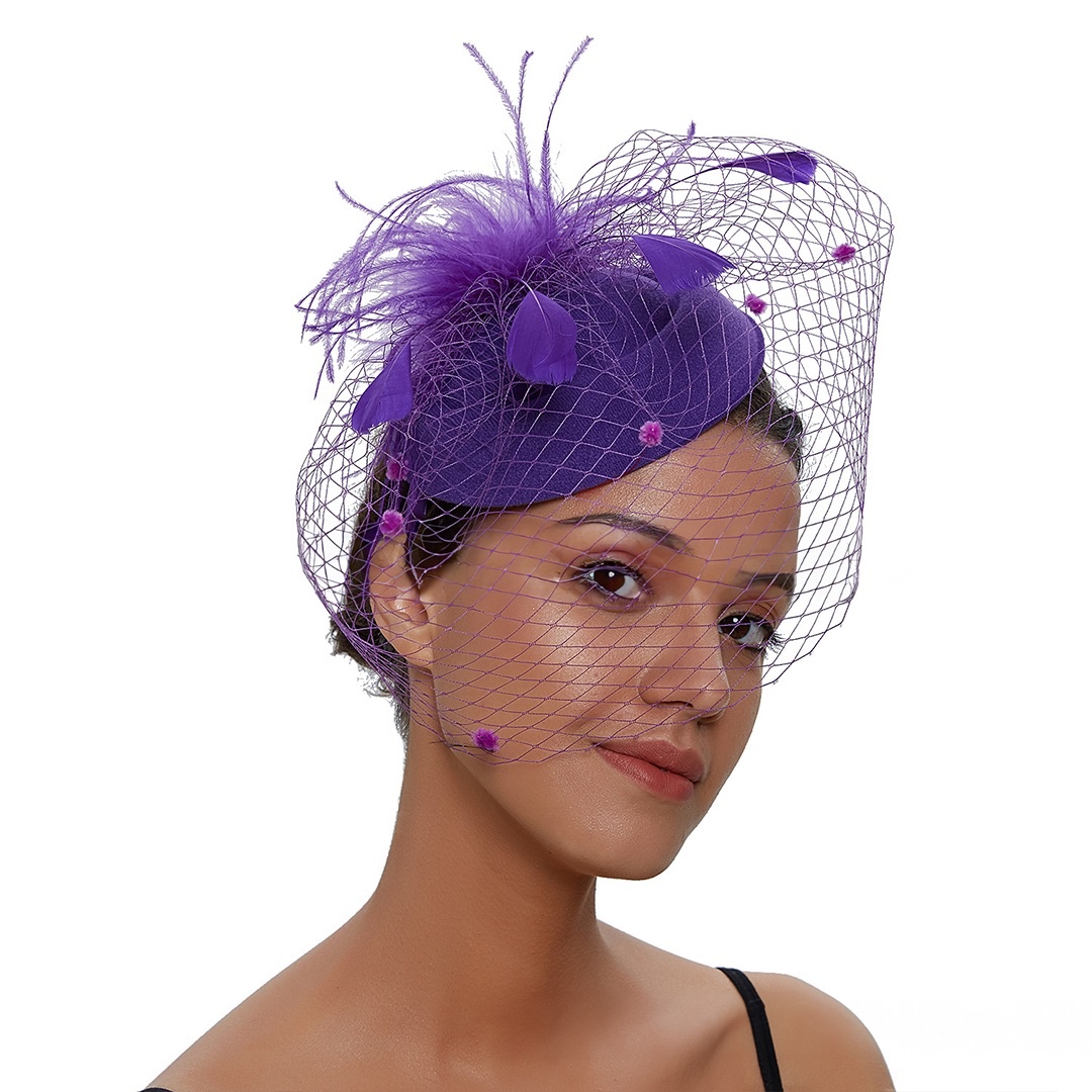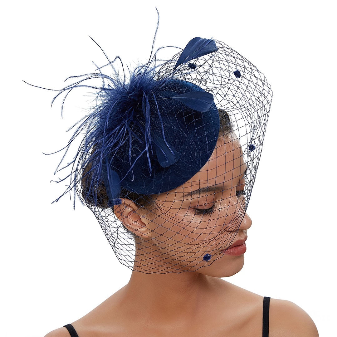 Fascinator Retro Bridal Mesh Headdress European And American Boutique Hair Accessories Veil Small Hat Feather Headband