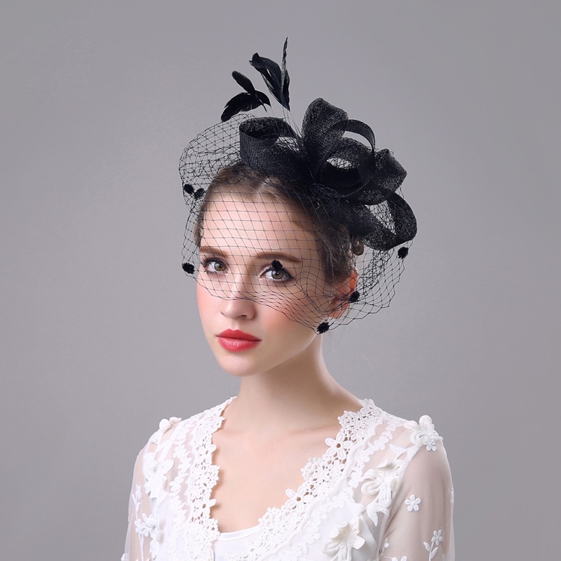 Fascinator Bridal Hat Headdress Hairpin Elegant Feather Large Mesh Linen Hat Flower Hair Accessories