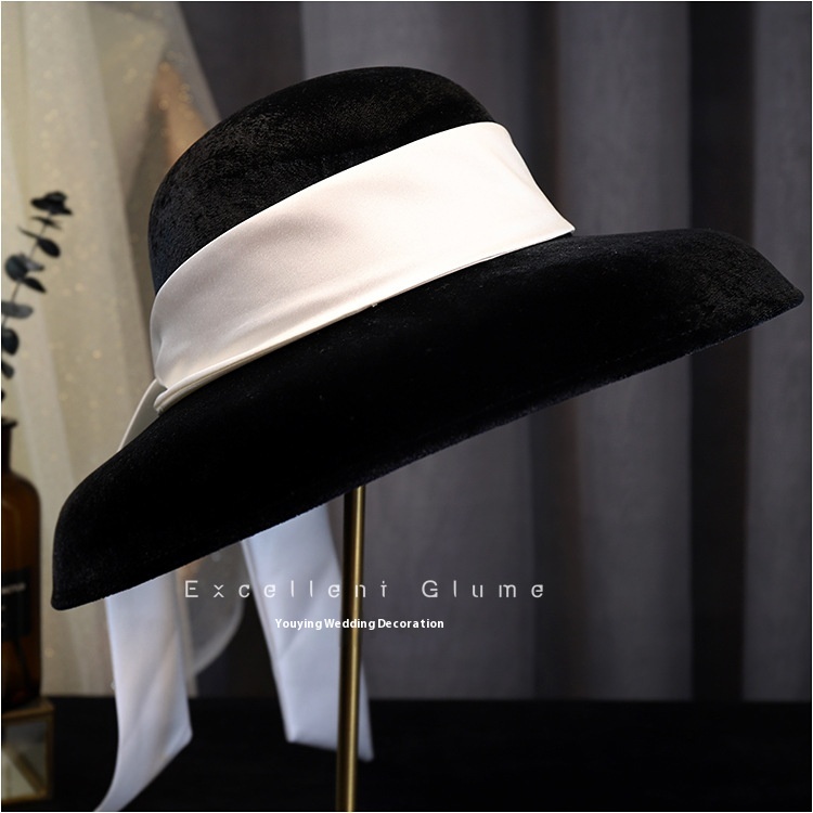 Fashion British French Elegant Simple Black Velvet Ribbon Hepburn Style Hat Photo Studio Retro Hat