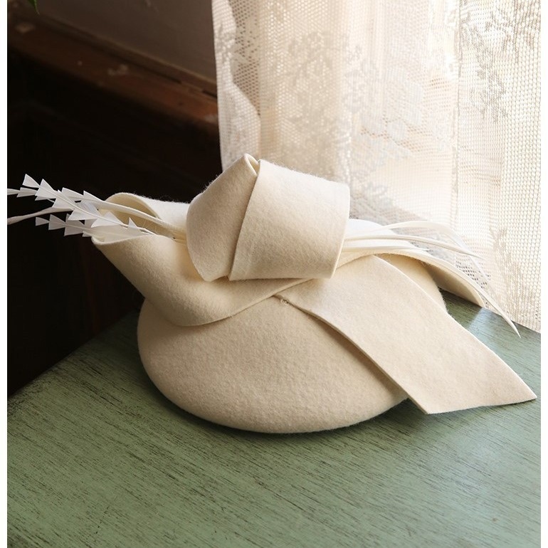 Fascinator Elegant White Feather Wool Retro British Style Small Hat Black Versatile Bride Headdress Concubine Hat