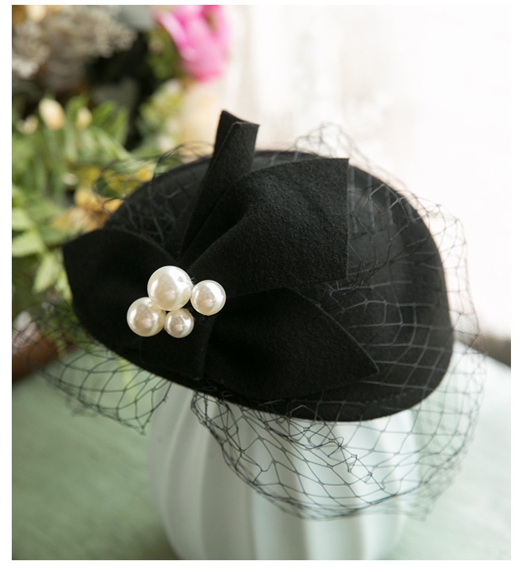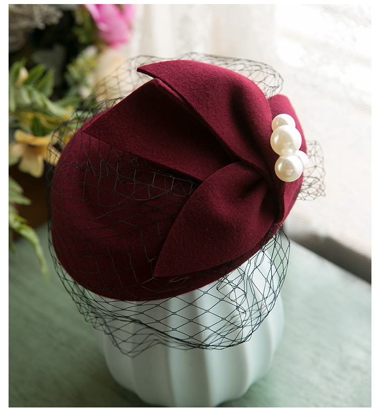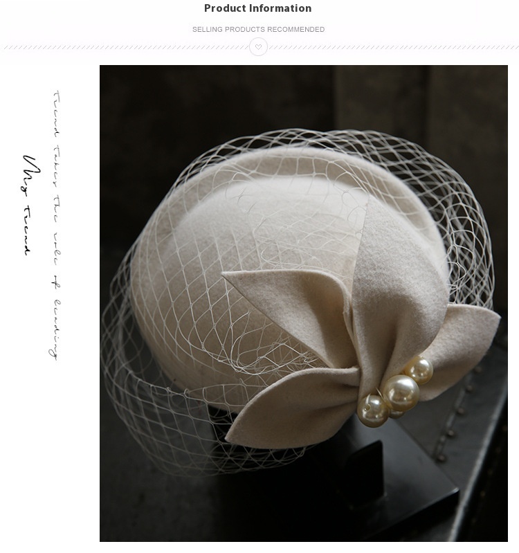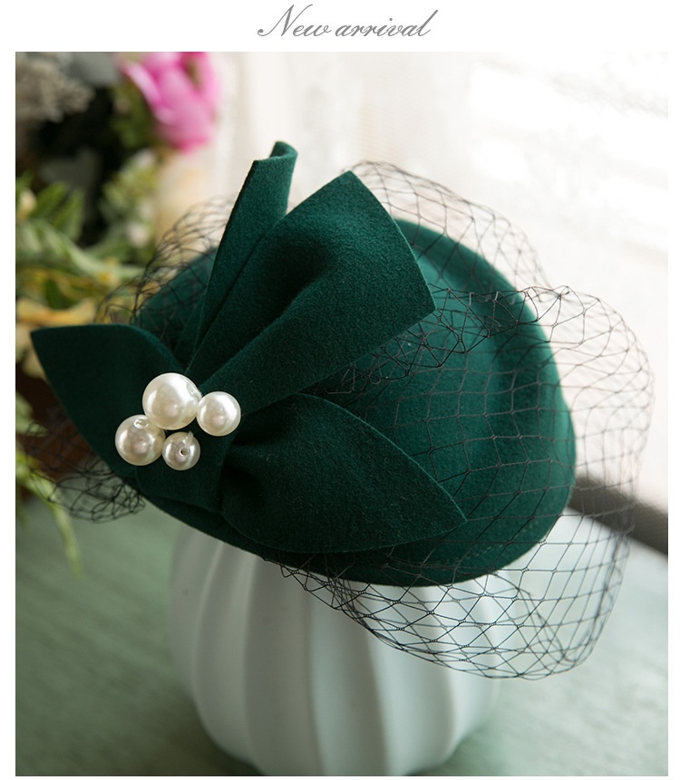 Elegant Retro Mesh Beret Woolen Hat Wedding Dress Banquet White Bride Headdress