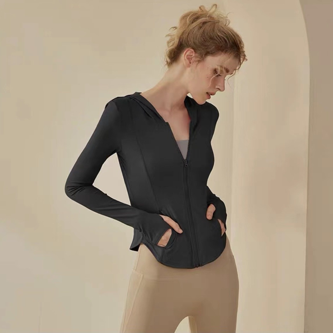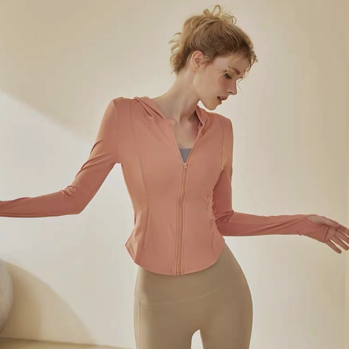 Lycra Yoga Suit Summer Outdoor Sports Leisure Fitness Hooded Jacket Women's High-grade Morning Running Breathable Slim Fit Top