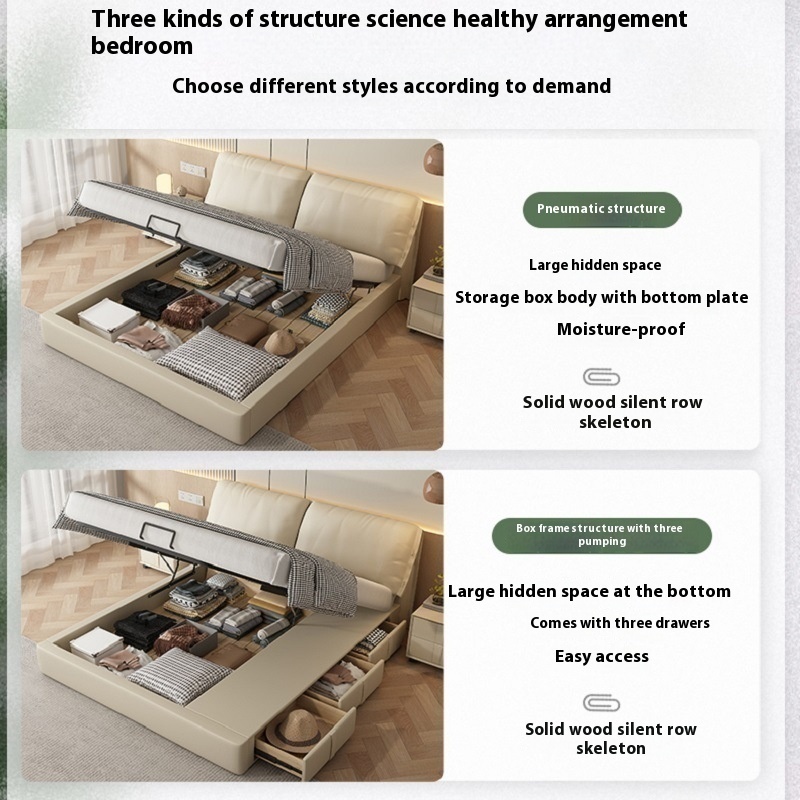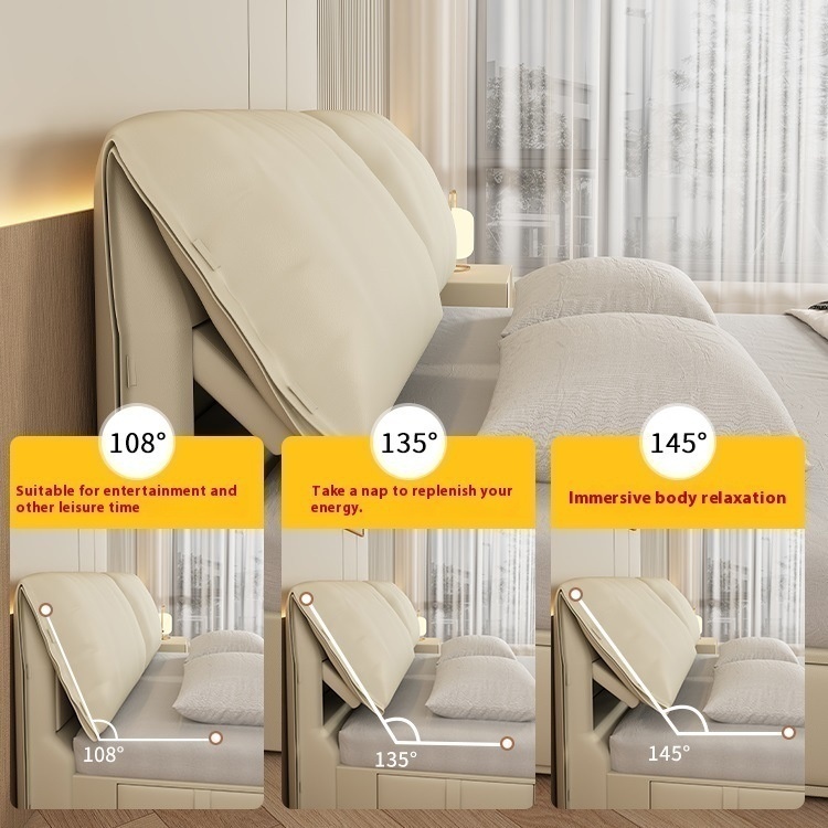 Leather Bed Elephant Ear Bed Master Bedroom Modern Simple Size Bed Minimalist Storage Wedding Bed Light Luxury Double Bed