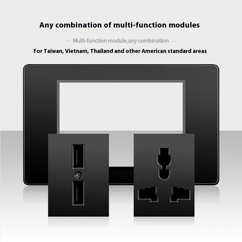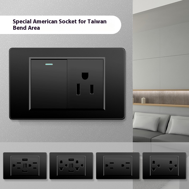 Taiwan American Standard USBCBlack Switch Socket110-250 VWall Socket Vietnam Foreign Trade Panel Batch