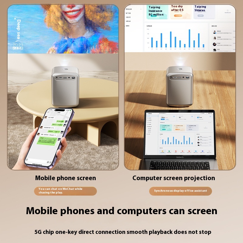 Ruitak Mini Portable Electric Focus Ultra HDHome Theater4 KProjector Home Mobile Phone Projector