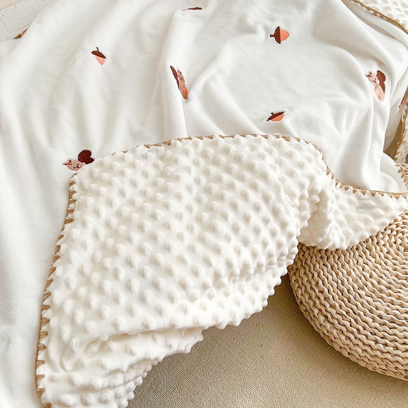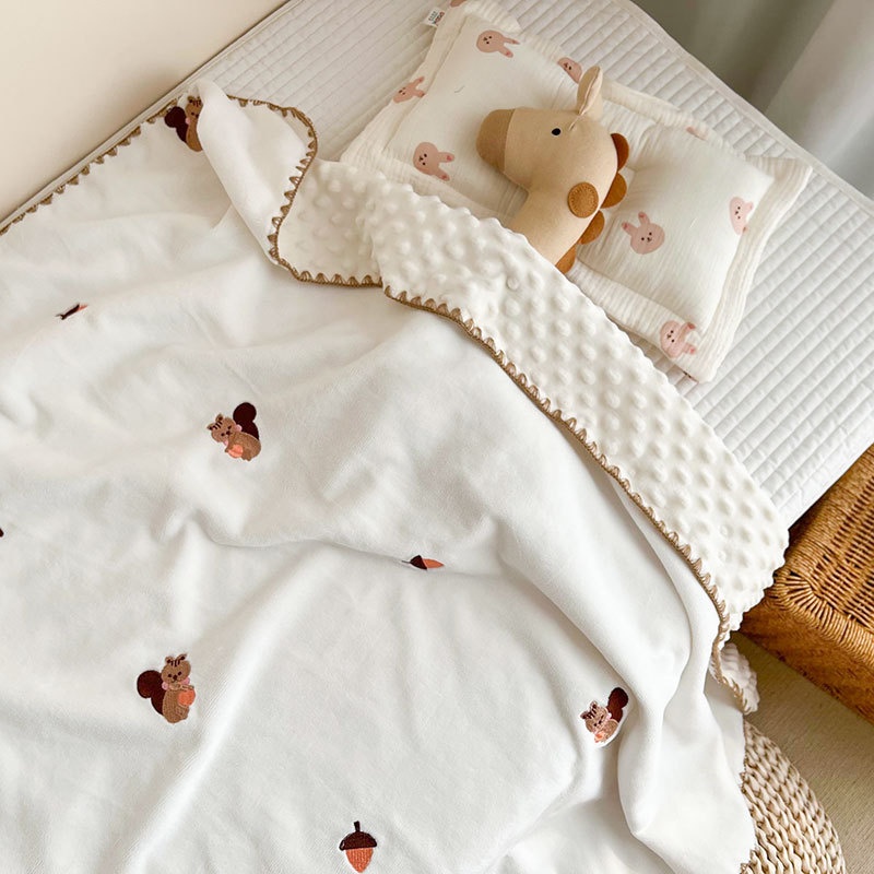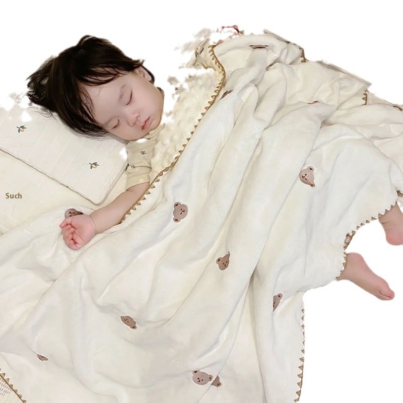 Baby Milk Velvet Blanket Bean Blanket Embroidered Shell Edge Baby Quilt Children Kindergarten Air Conditioning Blanket