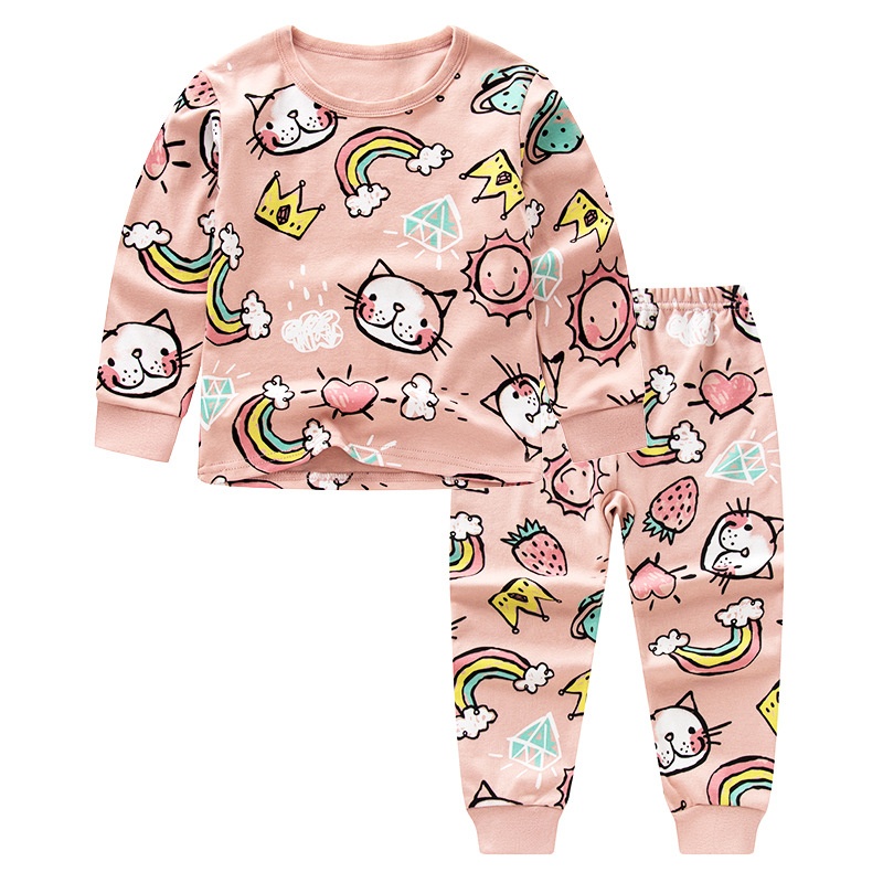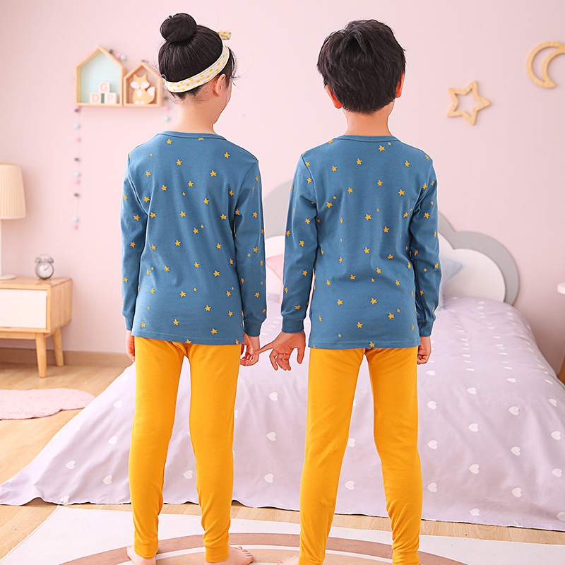 Style Children's Thermal Underwear Multi-color Cartoon Printed Cotton Material Autumn And Winter Style Boys And Girls Pajamas Two-piece Set