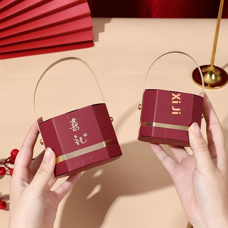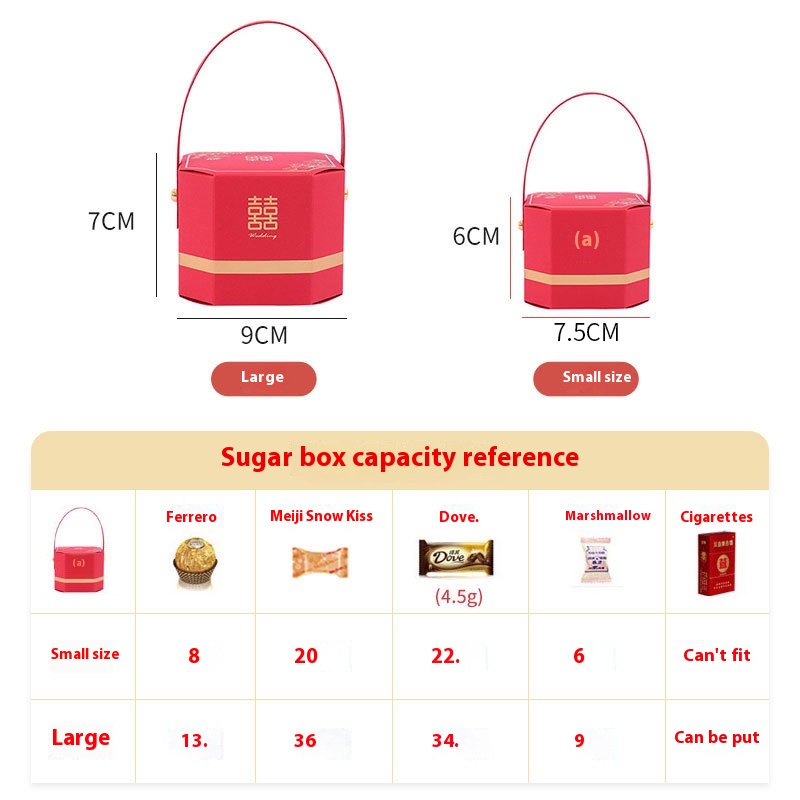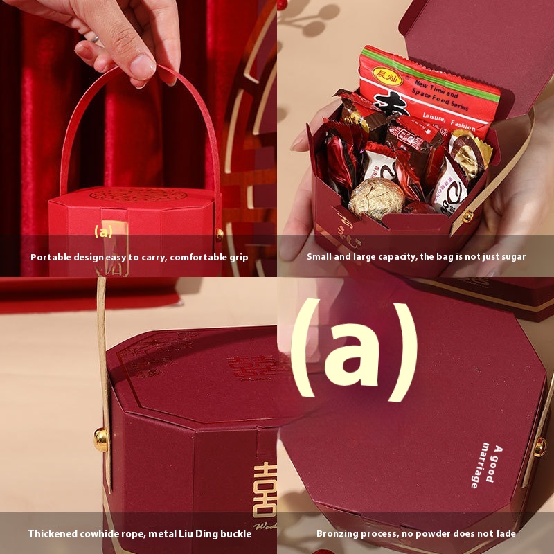 Chinese Octagonal Wedding Candy Box Wedding High-end Gift Box Creative Gold-stamping Large Portable Wedding Candy Bag