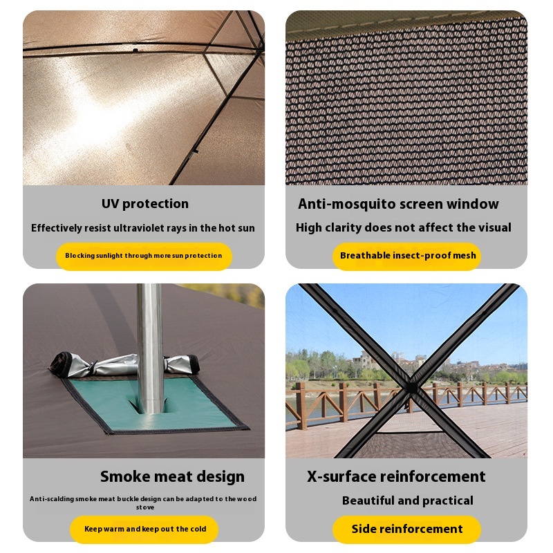 3m3.6m Outdoor Large Canopy Yurt Camping Self-driving Overnight Large Tent Hexagonal Tent Warm