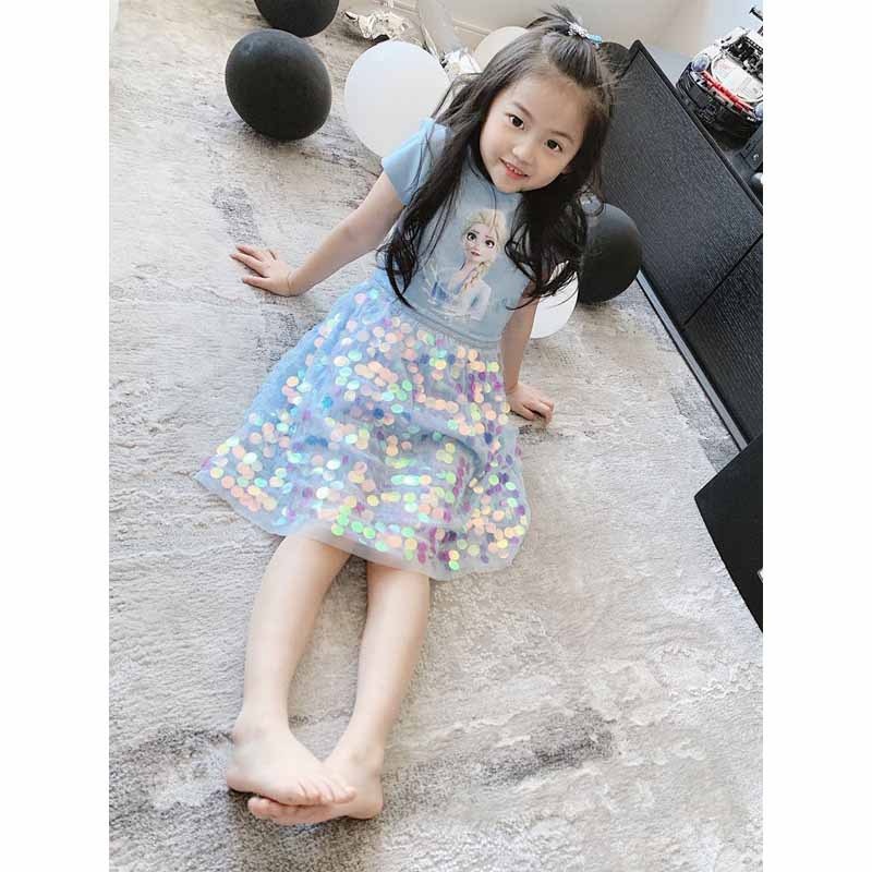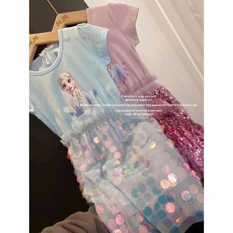 Girls Frozen2 Elsa Dress Summer Girls Dress Stylish Cotton Short-sleeved Elsa Princess Dress