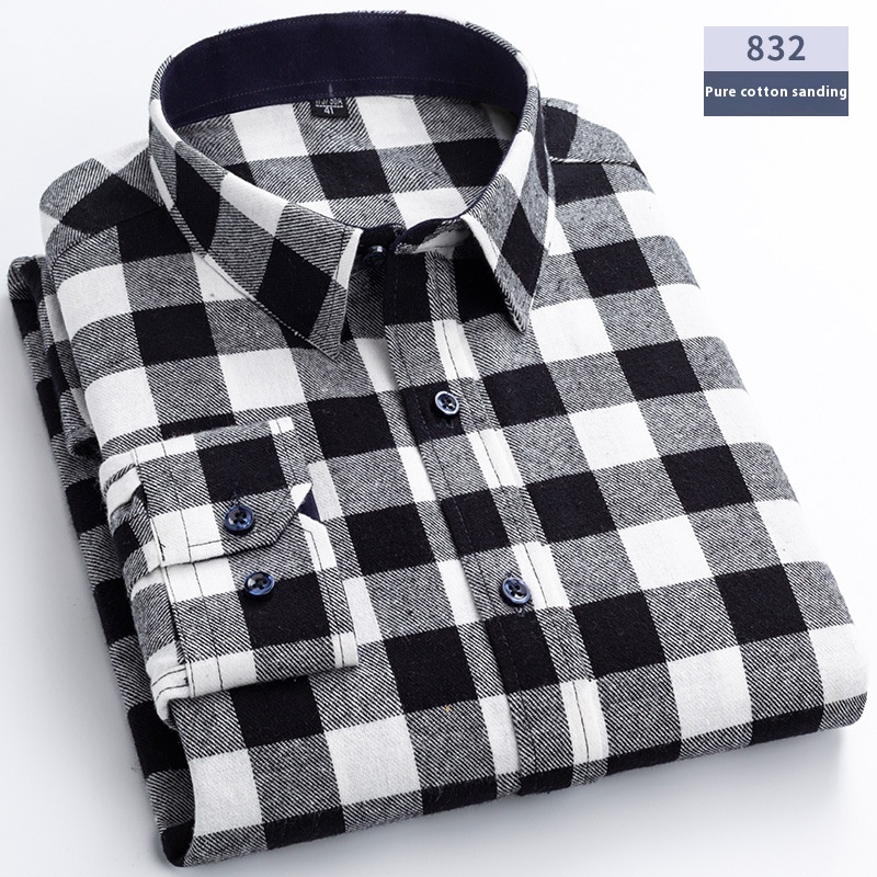 Spring Brushed Plaid Shirt Men's Enzyme Washed Cotton Shirt Foreign Trade Pure Cotton Plaid Shirt