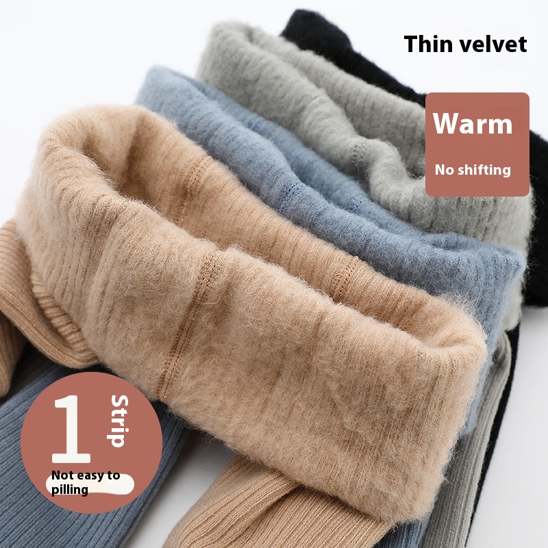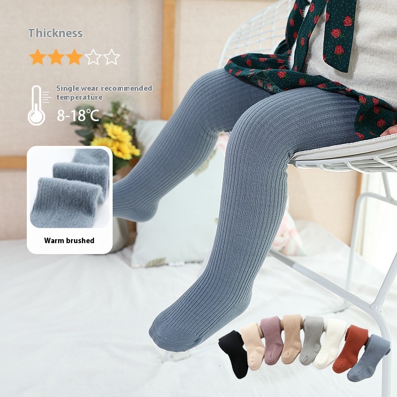 115 Autumn And Winter A-type Small And Medium Children's Pantyhose Girls Foot-length Pantyhose Thin Velvet Brushed Thick Leggings