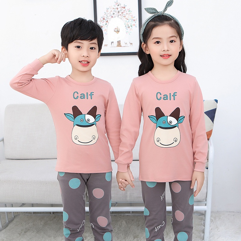 Children's Autumn Clothes And Autumn Pants Pure Cotton Boys And Girls Baby Thermal Underwear Set Pure Cotton Middle And Large Children's Cotton Sweater Pajamas