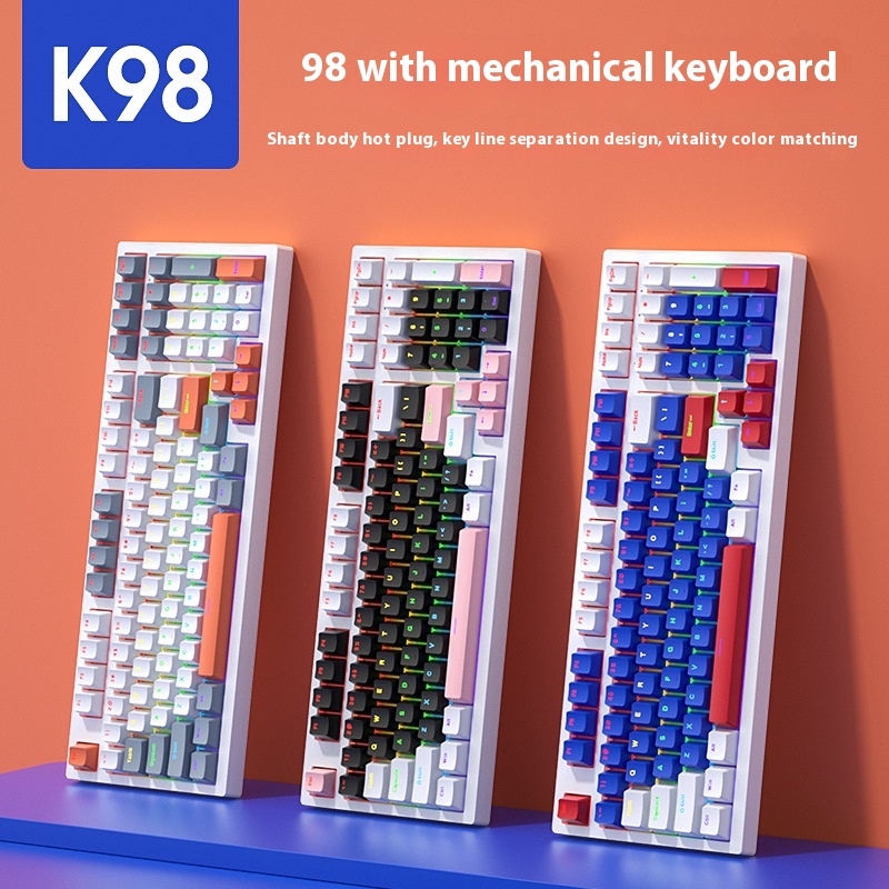 Dragon Guard K98 Luminous Wired RGBMechanical Keyboard98 Layout Gaming E-sports Blue Axis Red Axis Keyboard