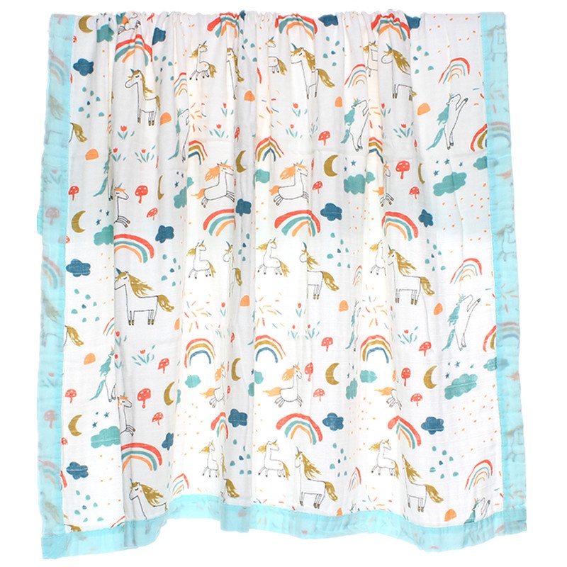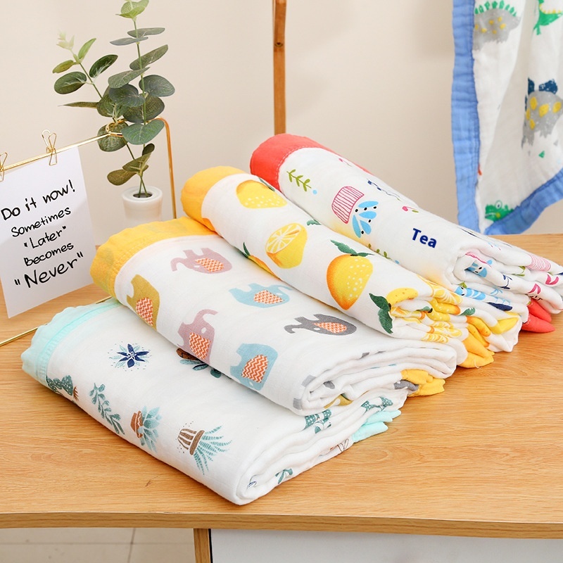 Bamboo Fiber Four-layer Gauze Baby Bamboo Cotton Towel Bath Towel Children's Blanket Children's Quilt Printed Wide Edge No Fluorescence