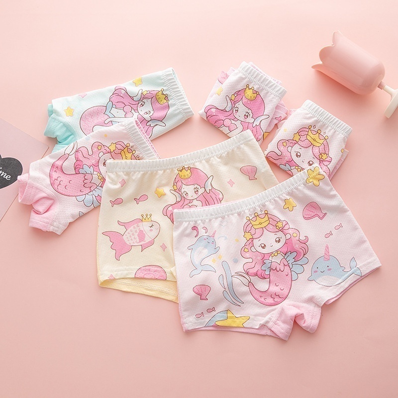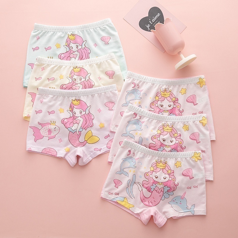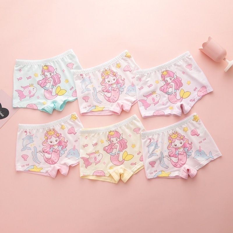 [6 Pieces]Pure Cotton Children's Underwear Girls Boxer Shorts Little Girl Toddler Student Children's Clothing Boxer Shorts Street Stall Goods
