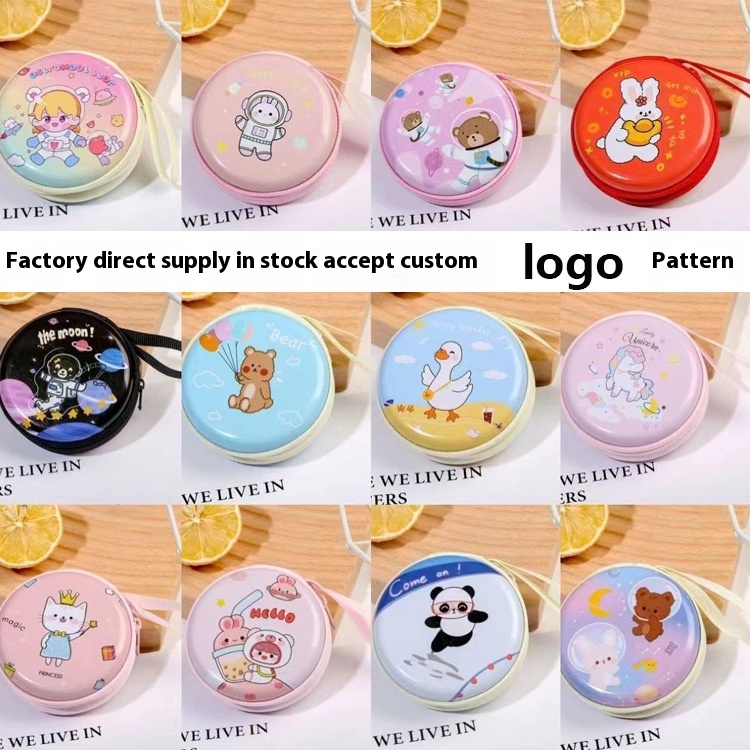 Children's Creative Cute Tinplate Coin Purse Cartoon Coin Purse Earphone Cable Round Zipper Storage Bag Small Gift