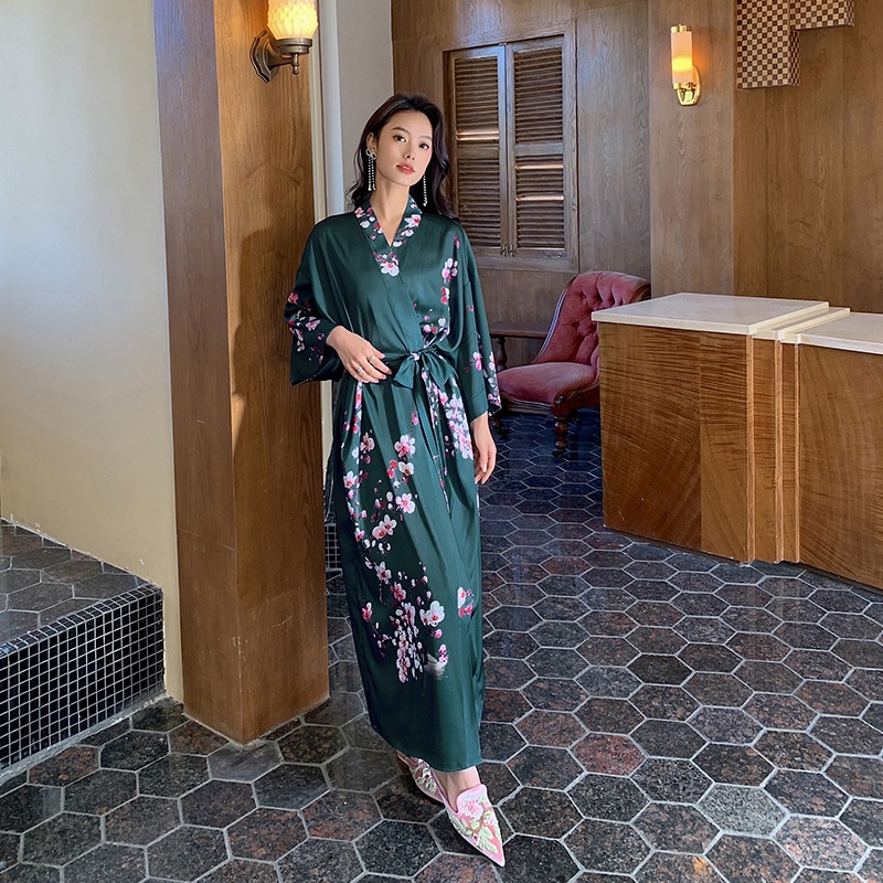 Yaoting Nightgown Women's Spring And Summer Thin Ice Silk Satin Atmospheric National Style Luxury Lace Morning Gown Home Clothes2669
