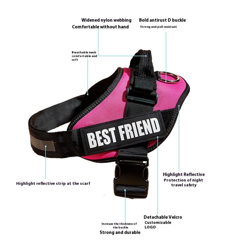 WAOPETK9 Explosion-proof Big Dog Chest Vest Golden Retriever Husky Dog Traction Pet Chest Harness