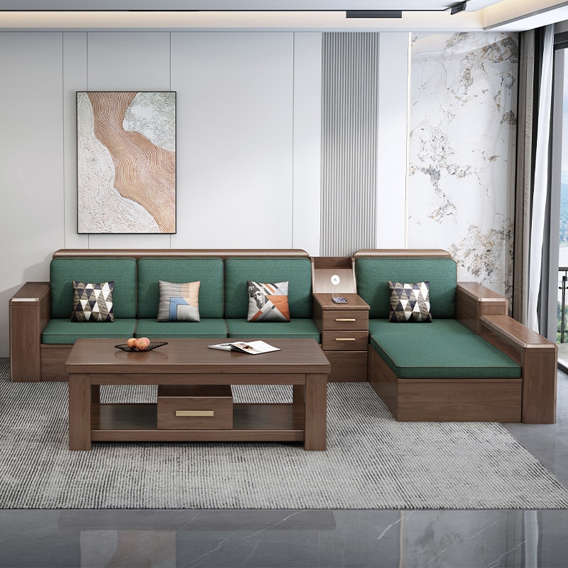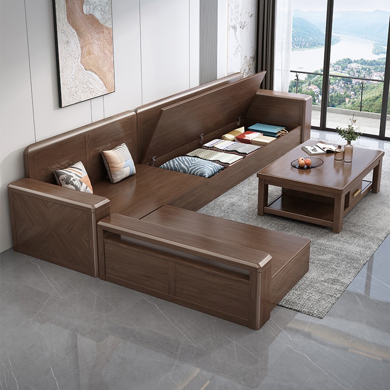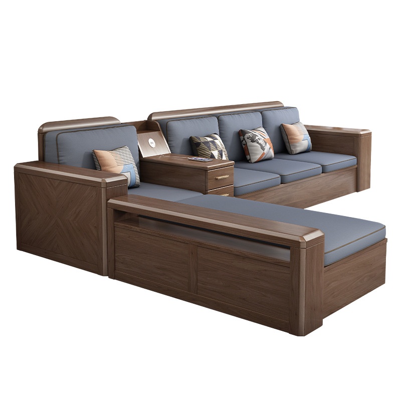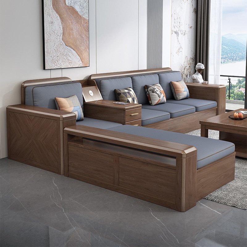 German Solid Wood Sofa Combination Modern Simple Small Apartment Walnut Storage Wooden Living Room Furniture Set DK63
