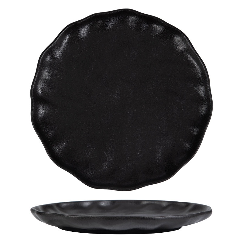 Black And White Frosted White Plate Household Creative High Value Ceramic Flat Plate Steak Plate Western Plate Vegetable Plate