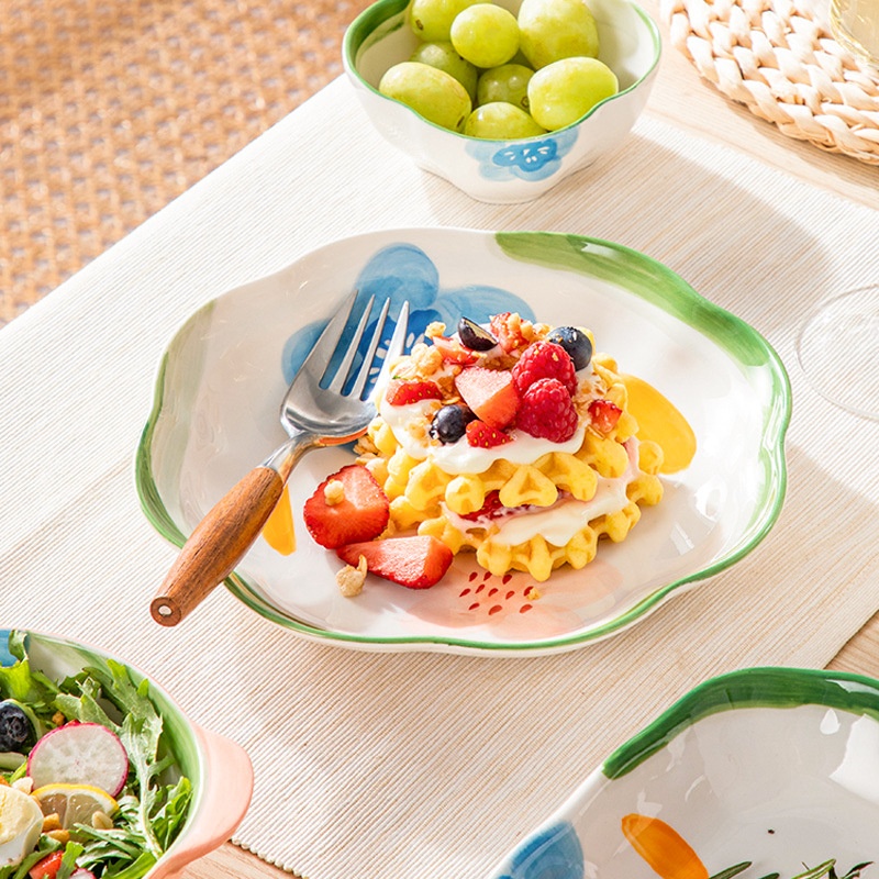 Monet Garden Japanese Rural Style Ceramic Rice Bowls,Saucers,Plates,High Value Chaozhou Tableware Set