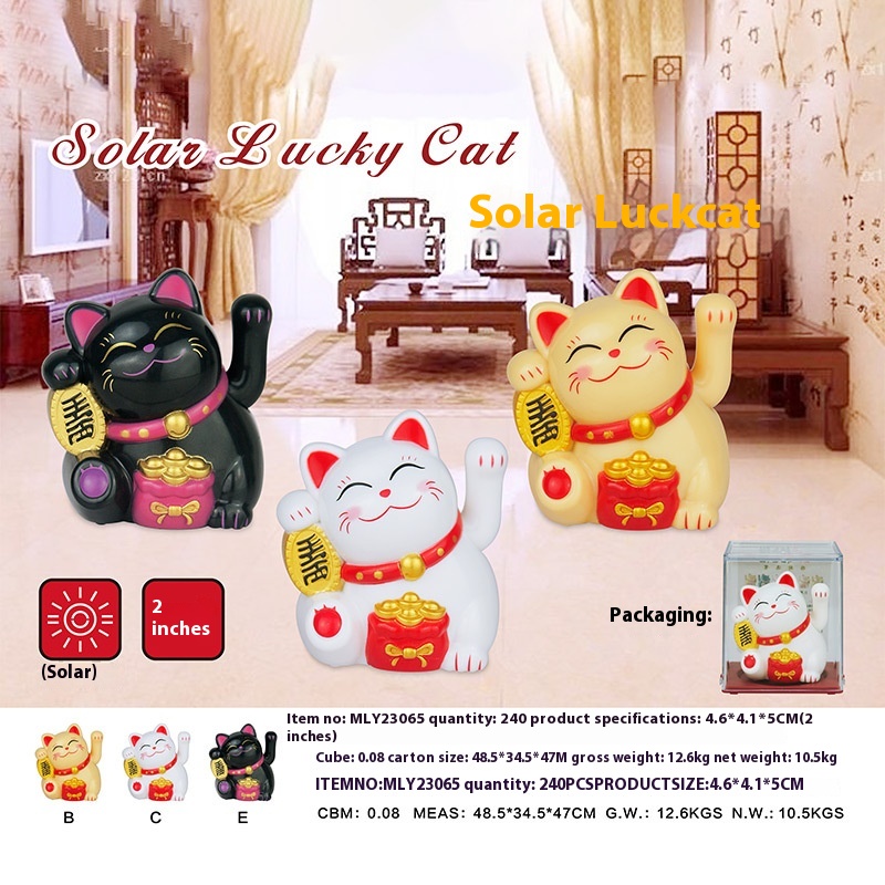 Solar Mini Fortune Cat Small Ornaments Shaking Hands Cute Desktop Car Opening Gift Ornaments MLY23065