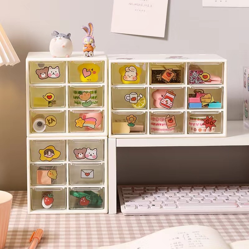 Nine-grid Dust-proof Drawer Storage Box Stationery Jewelry Notebook Desktop Mini Girl Heart Storage Cabinet