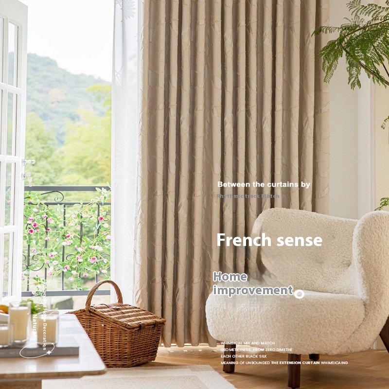High Temperature Shaping Living Room Bedroom Light Luxury American Style Embossed Gold Silk Leaf High Precision Jacquard Blackout Curtain Fabric Finished Product