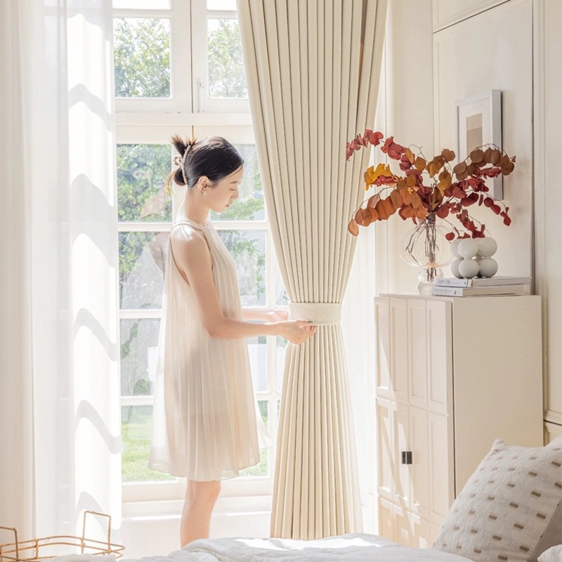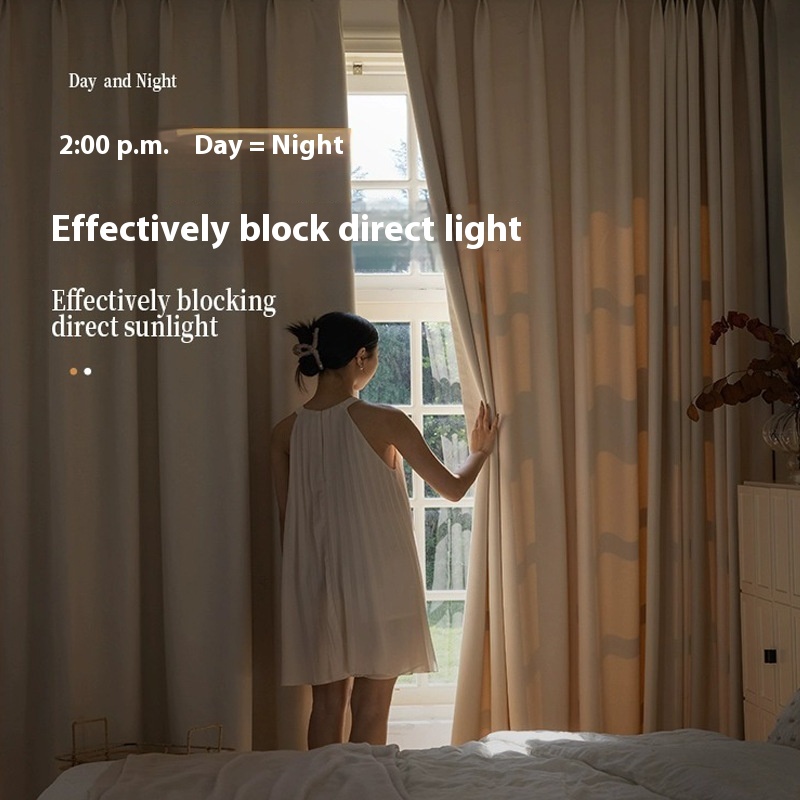 Modern Simple Cream Style Full Blackout Curtain Fabric Bedroom Living Room Bay Window Sunshade Cotton Linen Finished Curtain