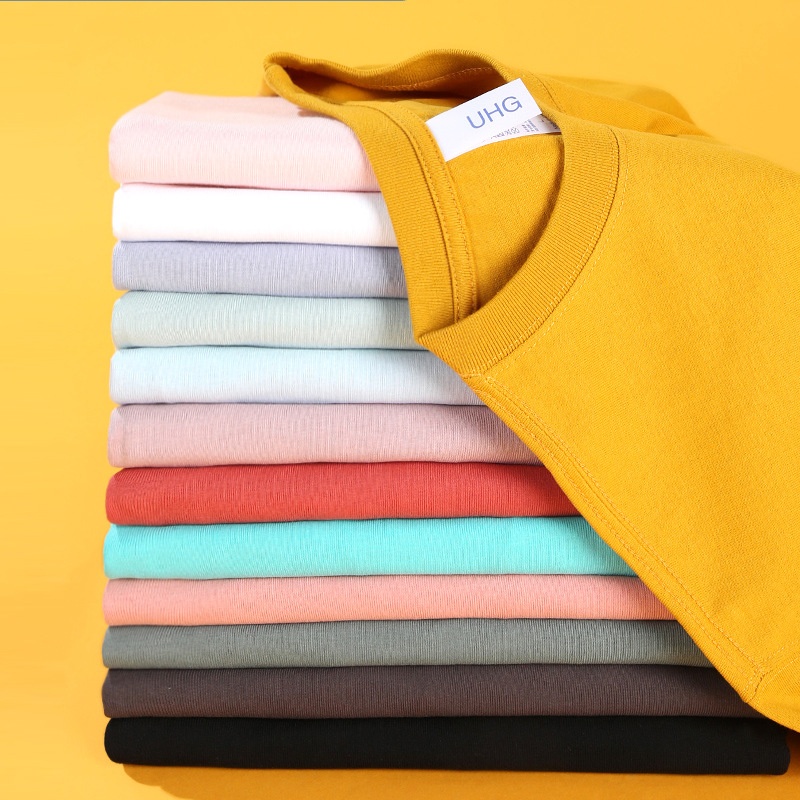 Retro Short-sleeved Men's T-shirt Pure Cotton Heavy230 Grams Round Neck Solid Color Bottoming Shirt White T-shirt Pure Cotton Short-sleeved T-shirt Men