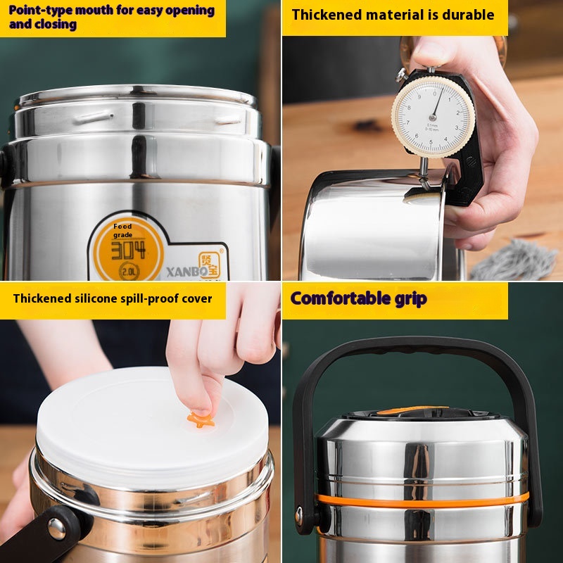 304 Stainless Steelulated Lunch Box With Rice Bucket For Office Workers Multi-layer Pot For Students Large Capacity Lunch Box