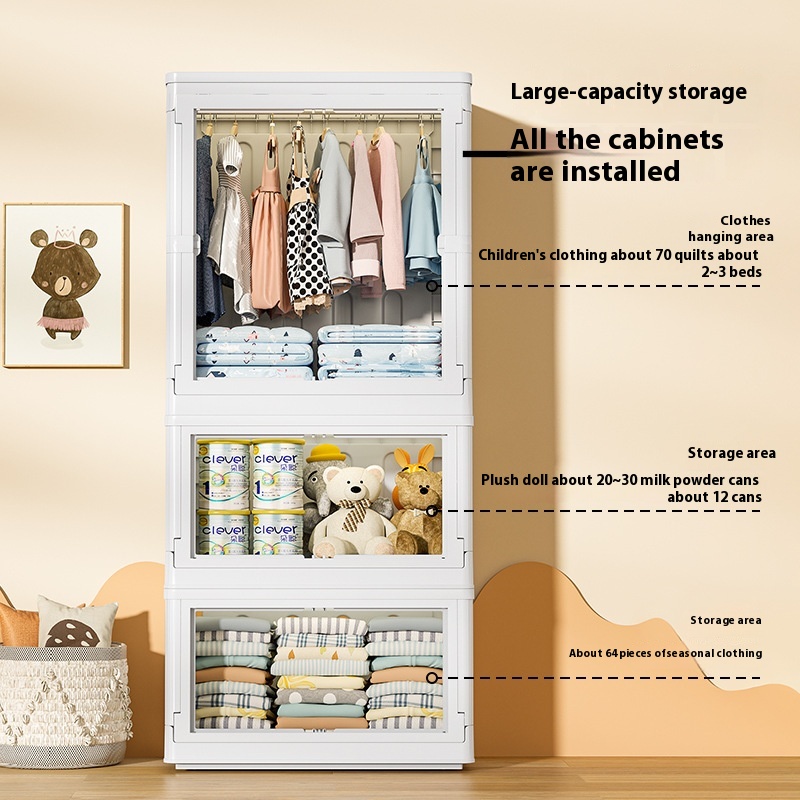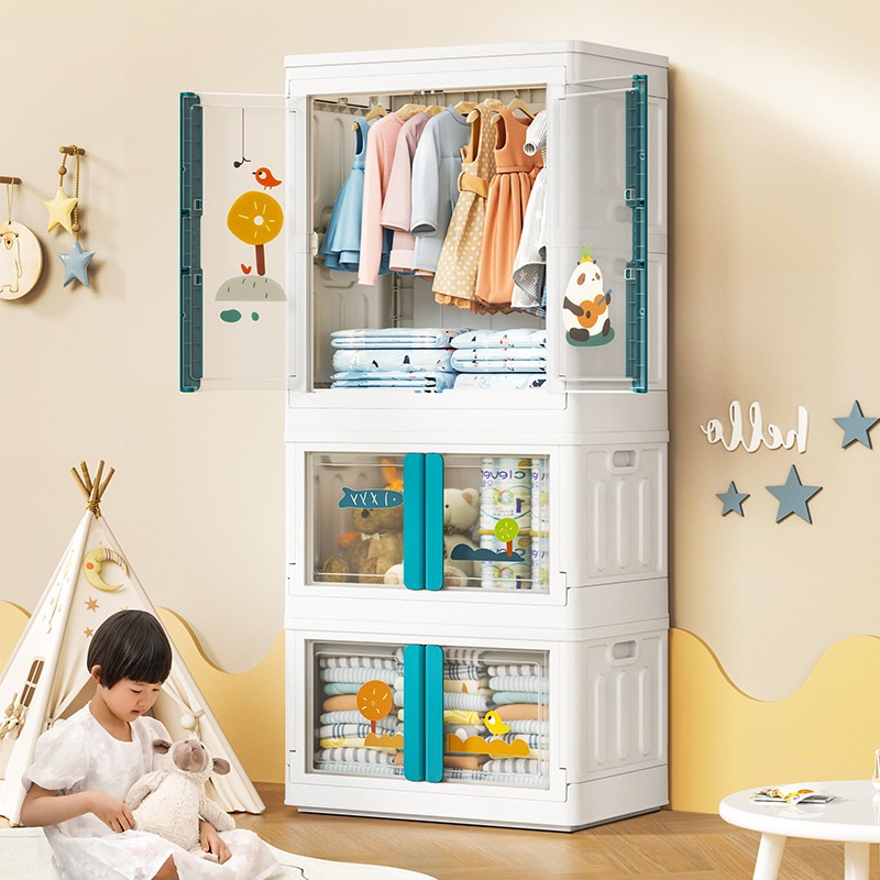 Simple Assembly Children's Wardrobe Home Baby Toy Clothes Hanging Storage Cabinet Folding Transparent Plastic Storage Cabinet