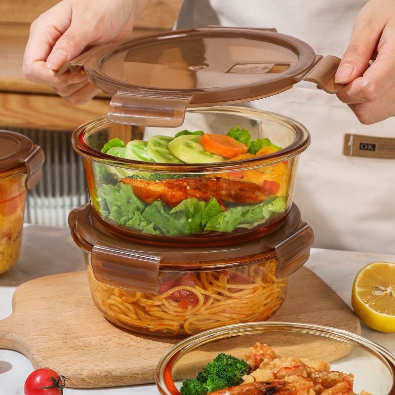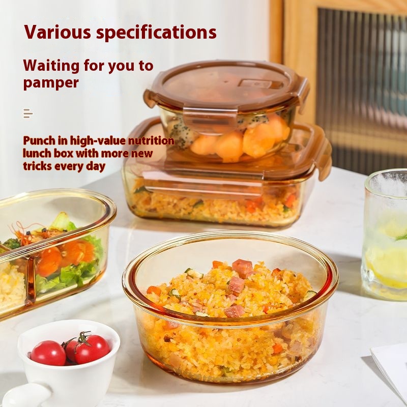 Adult Glass Lunch Box Round Household Lunch Box Lunch Box Office Worker With Lunch Box Glass Bowl Student Rice Bowl With Cover