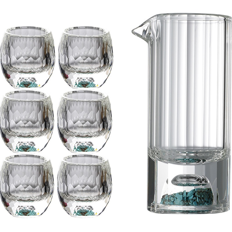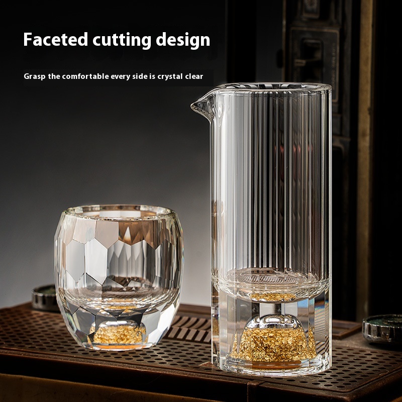 SLight Luxury Diamond Faceted Gold Foil White Wine Glass Vertical Stripe Turquoise Wine Dispenser Wine Cup Wine Set