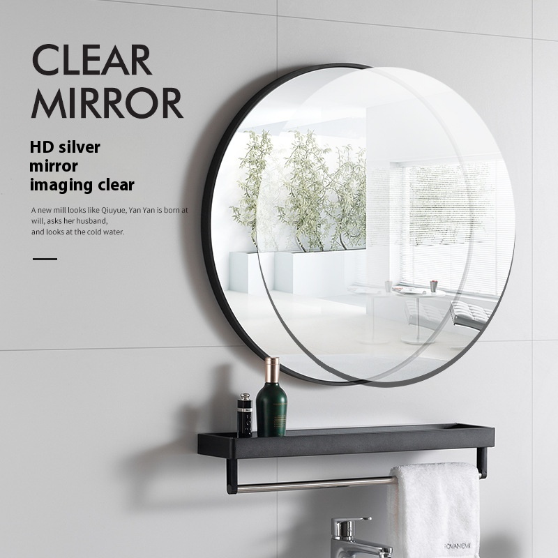 One Piece Drop Shipping Nordic Simple Bathroom Mirror Fashionable Bathroom Round Mirror Wall Hanging No Punching Bathroom Mirror Round