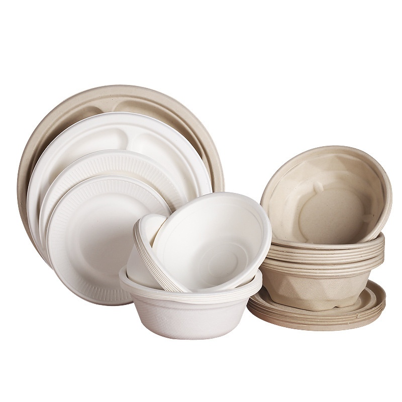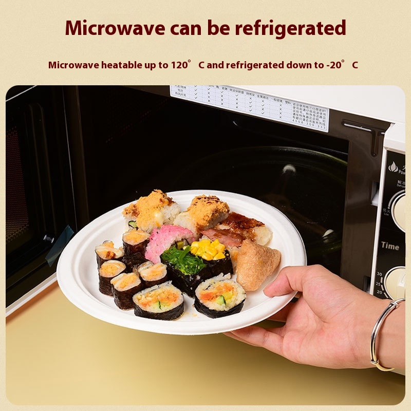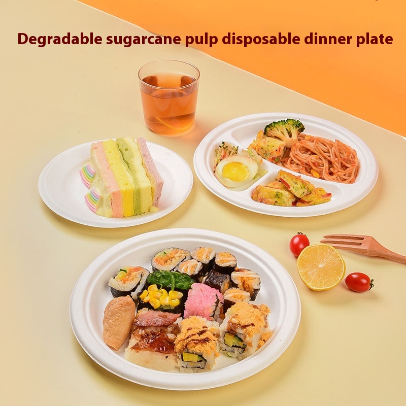 Disposable Paper Plate Paper Bowl Sugarcane Pulp Biodegradable Barbecue Birthday Cake Plate Thickened Meal Bowl Round Plate Painting Plate