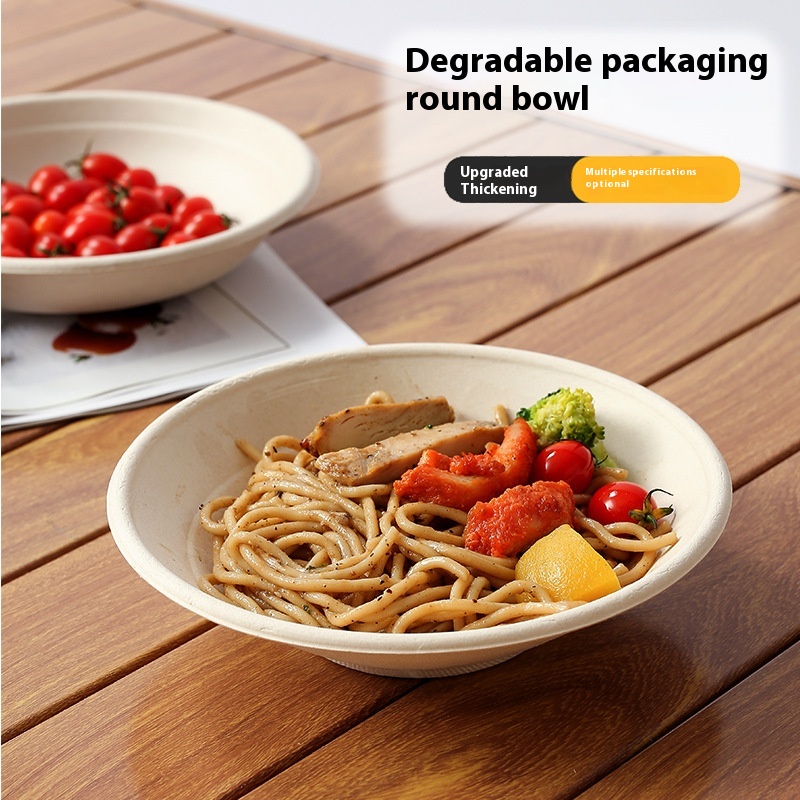 Thickened Pulp Tableware Round Bowl Salad Vegetarian Box Disposable Lunch Box With Lid Light Meal Fitness Takeaway Packaging Box