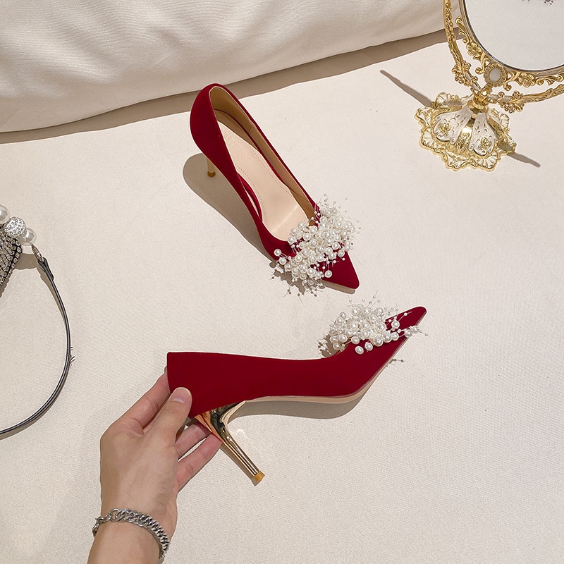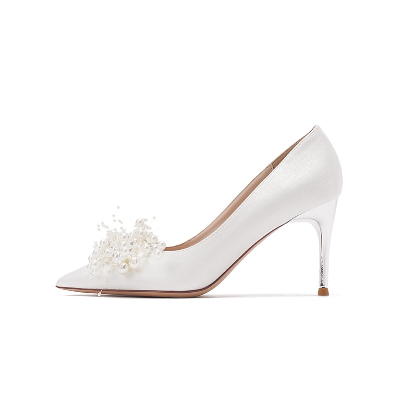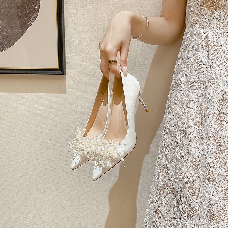 Summer Chanel Style White Women's Pointed Toe Genuine Leather Stiletto Wedding Shoes Women's French High Heels Single Shoes Women