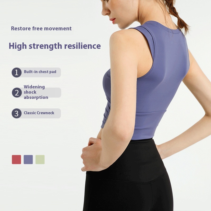 Tight Short Sports Vest For Women Running Fitness High-strength Shockproof Yoga Wear Top With Chest Pad Breathable Sleeveless