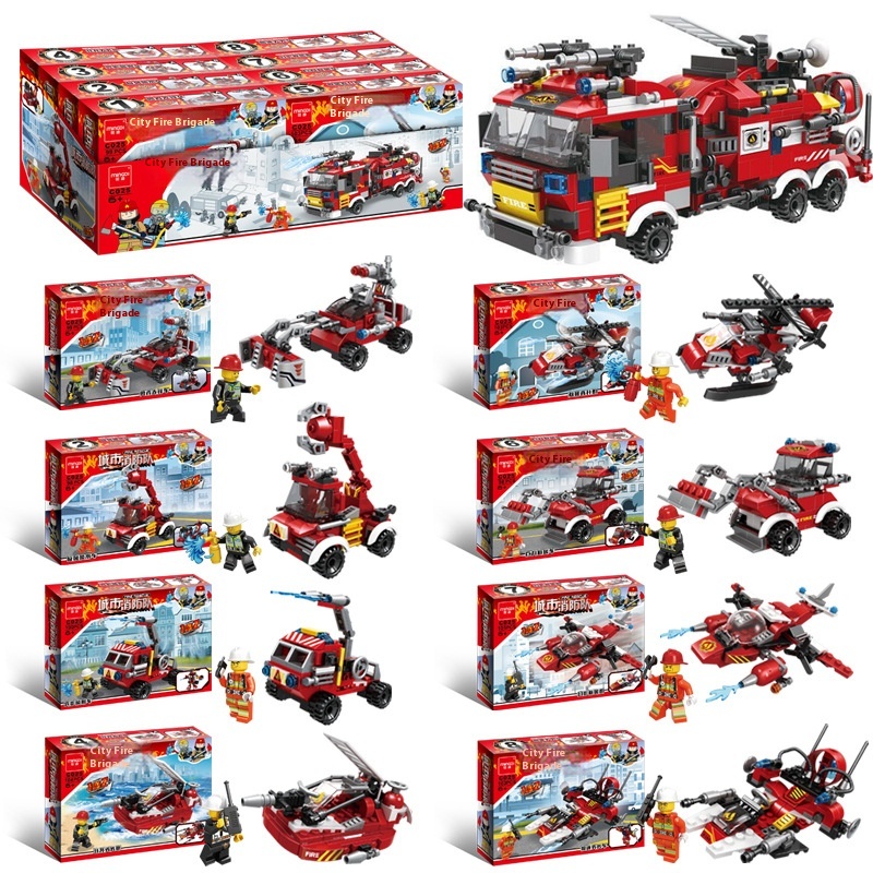 Compatible Lego Building Blocks China8 In1 Fire Brigade Small Particles Children's Educational Stall Toys Gifts